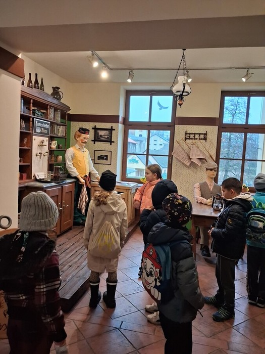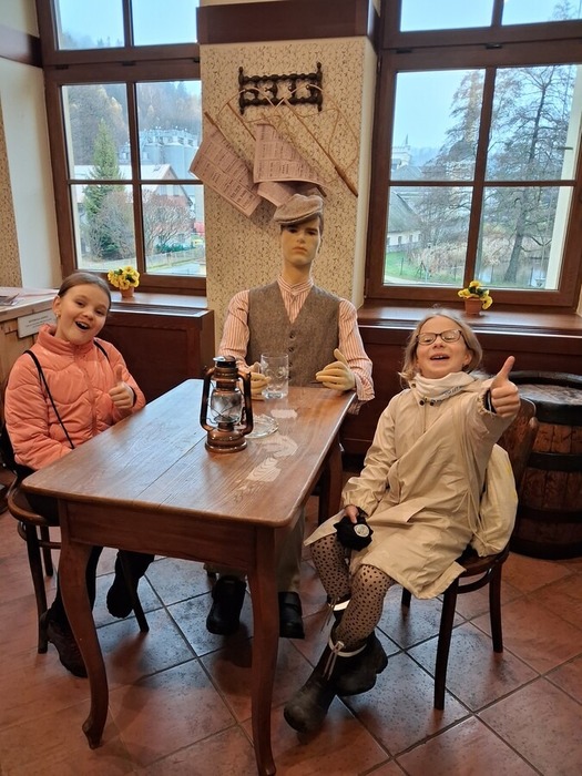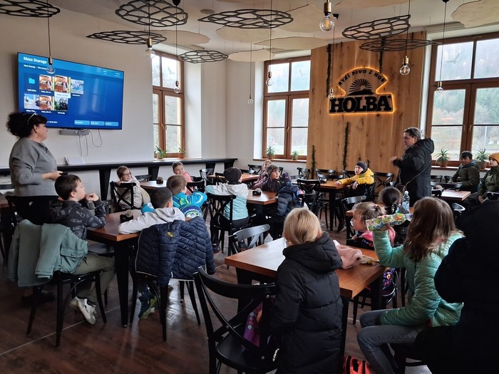 V pátek odpoledne 14.11. se děti ze školní družiny vydaly na podzimní turistickou vycházku po okolí Hanušovic. Cílem bylo užít si společný čas na čerstvém vzduchu, seznámit se s blízkým okolím a aktivně si odpočinout po škole. Během vycházky jsme míjeli známá místa, povídali si o nich a děti si všímaly změn v krajině. Cestou jsme narazili i na místní Pivovarské muzeum, které jsme se rozhodli na krátký čas navštívit. Nečekaná zastávka se nakonec ukázala jako dobrý nápad. Děti zaujal seznamovací výklad, i krátké video o výrobě piva a profesemi, které jsou s tím spojeny. Zajímavé byly také historické exponáty bednářského řemesla i fotokoutek s panem hostinským, který děti zavedl do období první republiky. Po krátké prohlídce jsme pokračovali v naší trase směrem k dětskému hřišti. Tam si děti odpočinuly, vyzkoušely si jiné herní prvky a užily si pohybové hry. Vycházka se vydařila nad očekávání. Děti si domů odnesly spoustu nových dojmů.