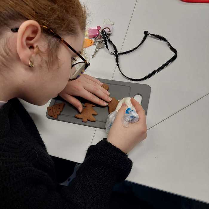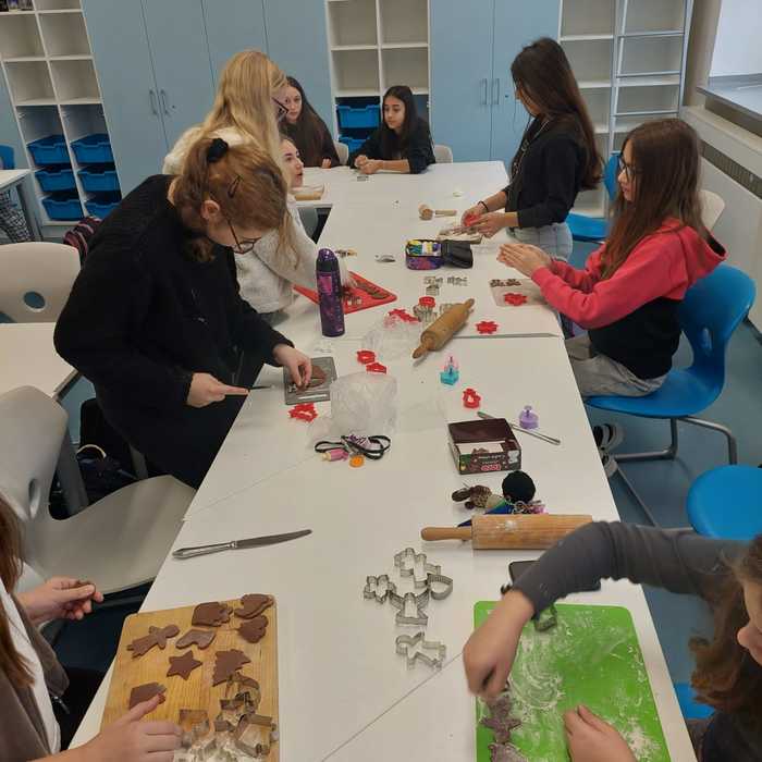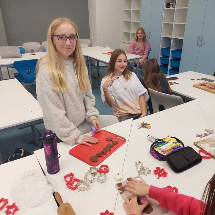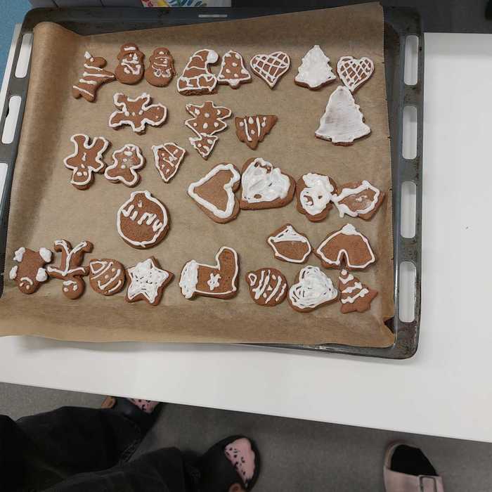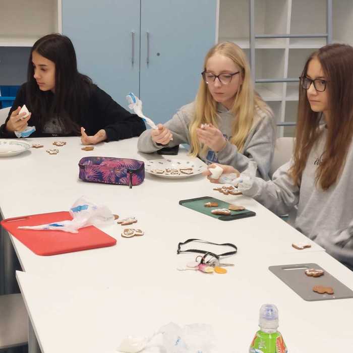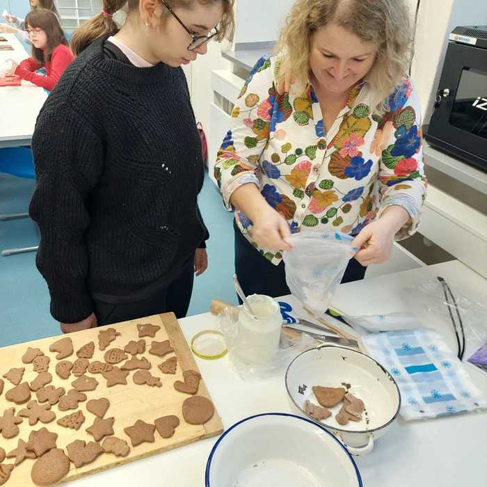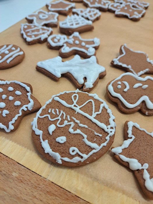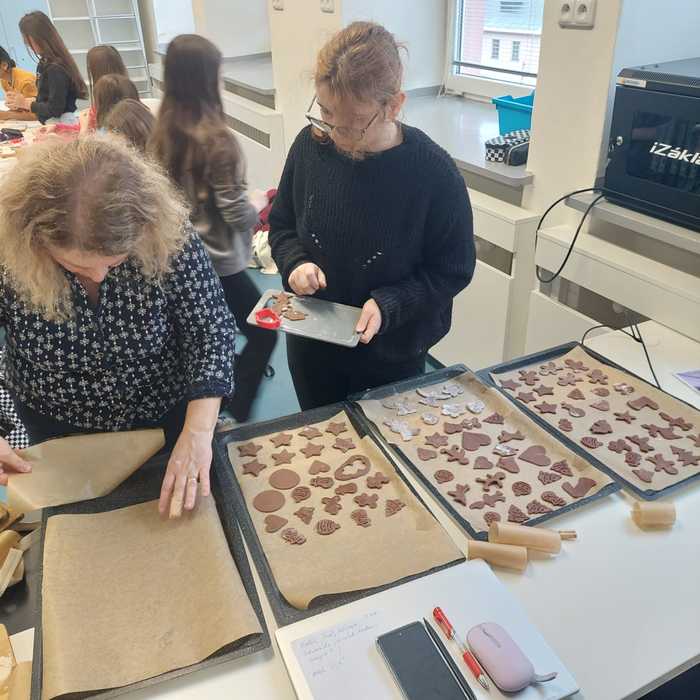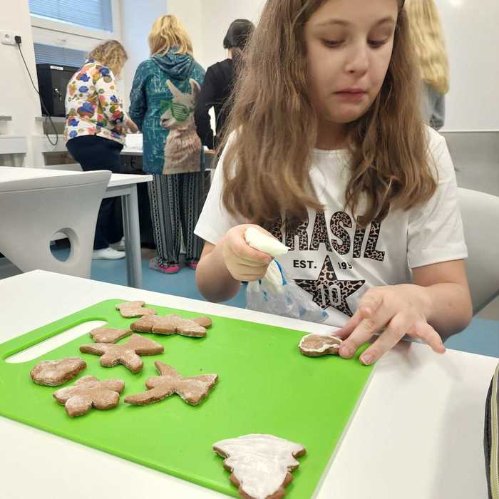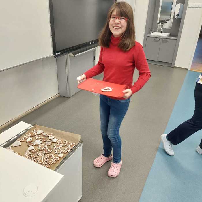 Žákyně 6. ročníku si v hodinách pracovních činností zpestřily adventní čas vykrajováním a zdobením perníčků. V pondělí 1. prosince se děvčata pustila do práce, nejprve vykrajovala různé tvary z voňavého těsta. Perníčky se poté upekly ve školní jídelně, za což patří velké poděkování vedoucímu jídelny panu Juřenovi. O týden později, 8. prosince, přišlo na řadu zdobení. Perníčky dostaly krásné vzory z bílkové polevy. Některé kousky se hned snědly nebo putovaly domů, ale zůstalo jich ještě dost. Ty poslouží jako sladká odměna pro děti, které se 15. prosince zapojí do Adventních dílen. Čeká je zde naučná stezka Ptáci na krmítku, a kdo správně zodpoví několik otázek, získá voňavý perníček. Děvčata si zaslouží pochvalu, pracovala pilně a se zaujetím. Z hotových perníčků máme radost, opravdu se povedly!