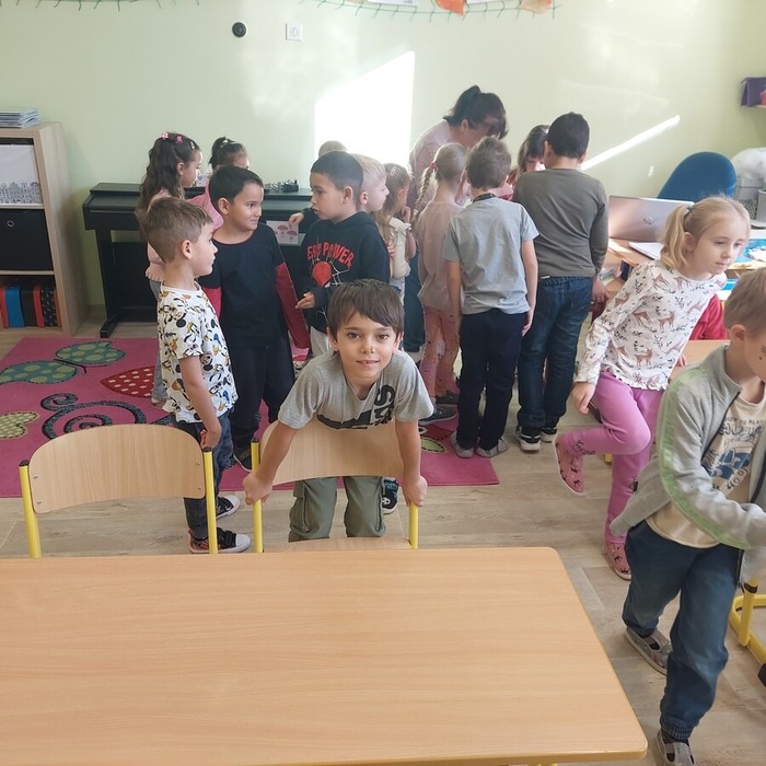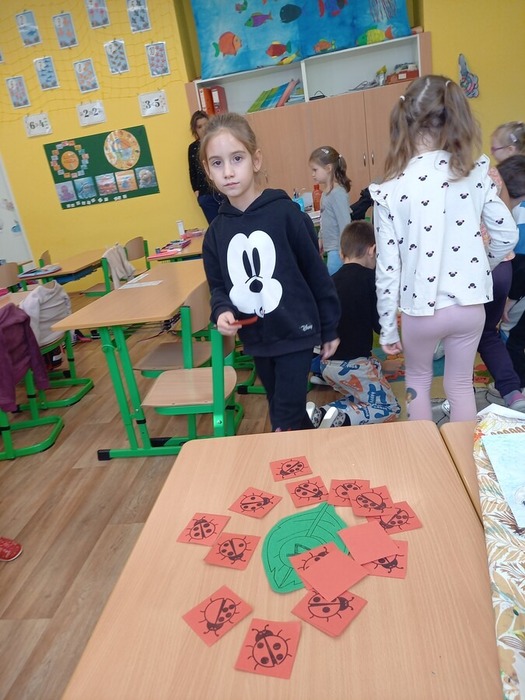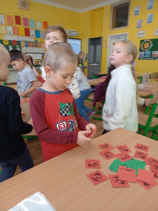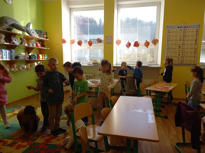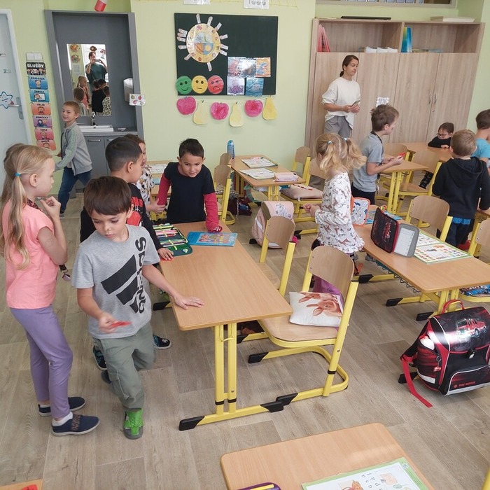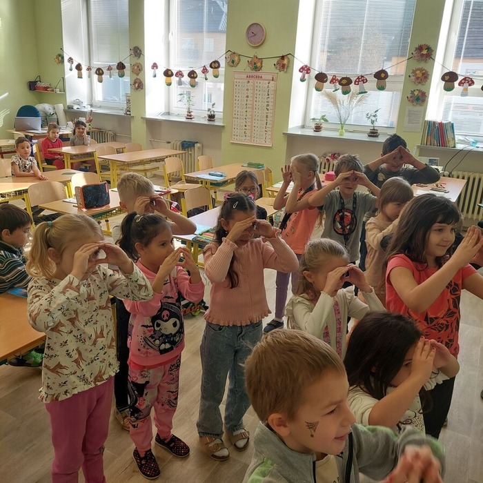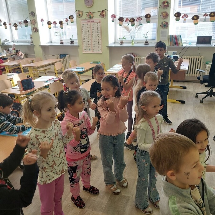 Dne 6. 11. 2025 nás přišli do prvních tříd navštívit naši kamarádi ze školky. Přivítali jsme je písničkou a krátkou ukázkou toho, co už umíme, tentokrát jsme se zaměřili více na matematické představy. Počítali jsme tečky na beruškách a hledali podzimní plody schované po třídě a na chodbě. Protáhli jsme se, zatancovali si a užívali si společnou zábavu.