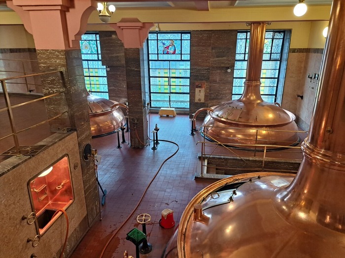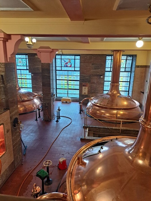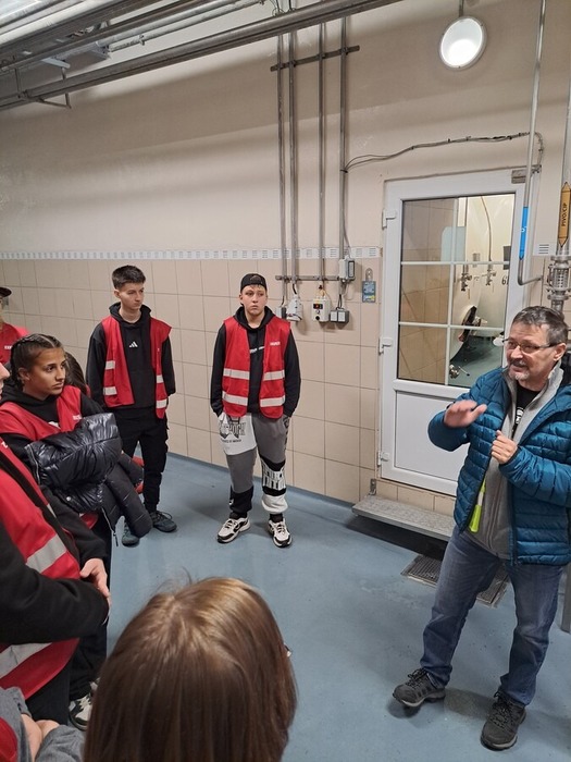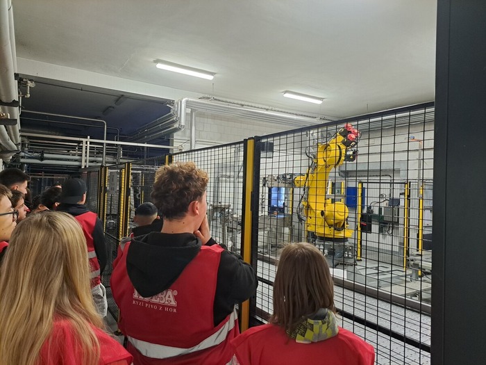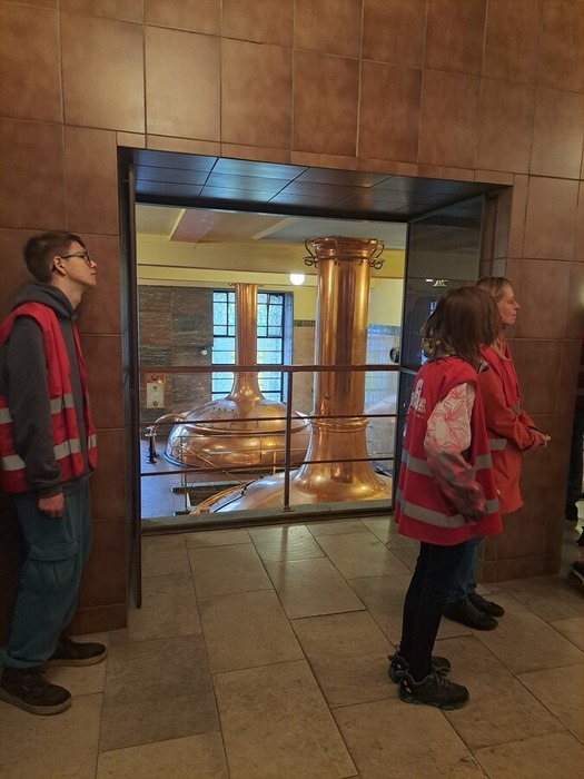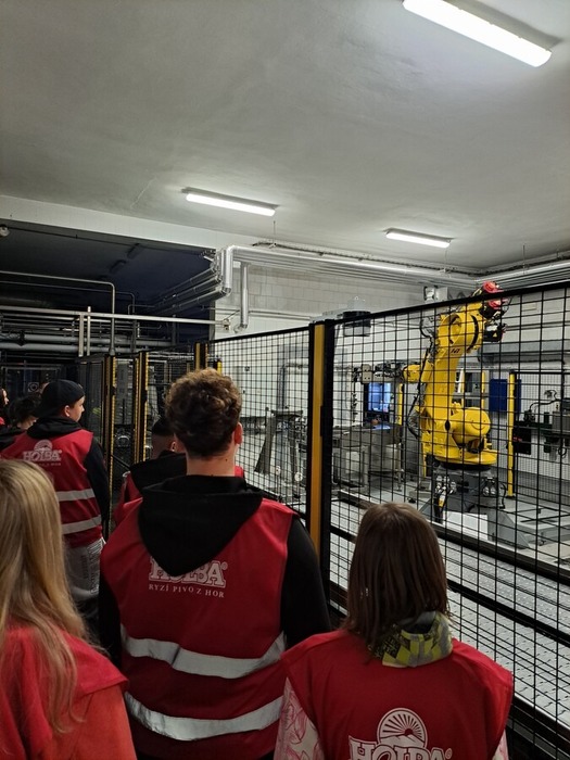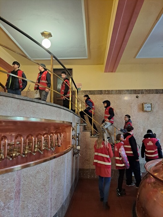 Po úvodní přednášce a hraném dokumentu jsme si všichni oblékli červené výstražné vesty a vydali se do provozu. Během prohlídky se střídaly prostory s výrazně odlišnými teplotami – od prohřáté haly varny až po chladné prostory, kde pivo zraje. Žáci navštívili spilku, varnu s měděnými kotli, prostory zrání i stáčírnu, kde se pivo plní do nerezových sudů pomocí robotických technologií.
