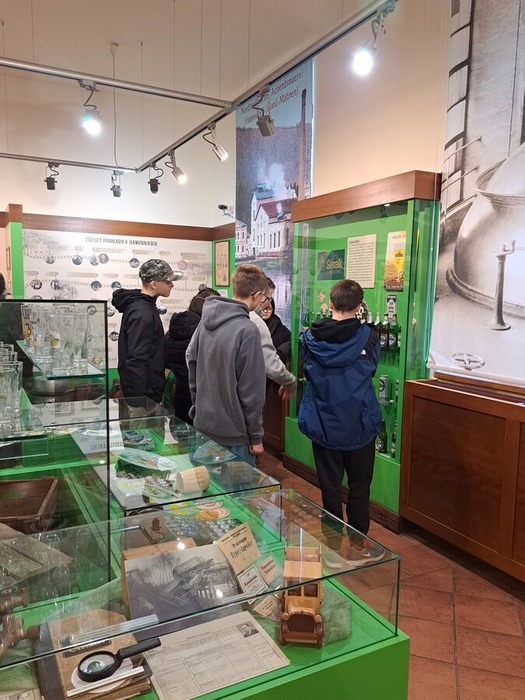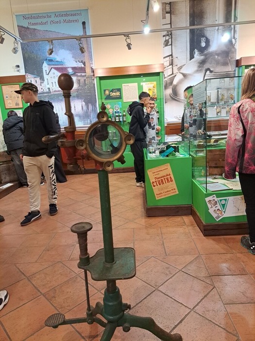 Součástí programu byla také návštěva Pivovarského muzea v Hanušovicích, kde se žáci dozvěděli, jak se pivo vyrábělo dříve, jaké nástroje se používaly a jak se technologie měnila v průběhu let. Muzeum krásně doplnilo praktickou část exkurze a nabídlo pohled do pivovarské historie regionu.