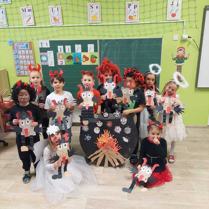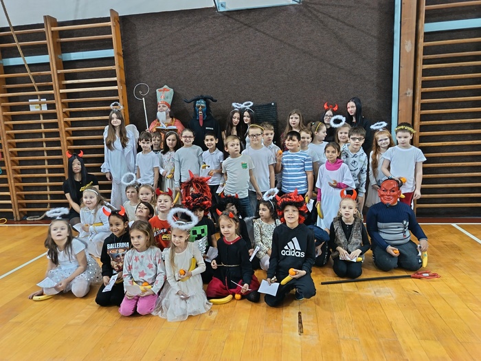 Pátek 5. prosince se na naší škole nesl v duchu tradiční mikulášské nadílky. Už od rána bylo ve škole veselo. Malí andílci a čertíci zaplnili prostory tříd. Děti z prvního stupně měly celý den speciální projektové vyučování plné her, zábavy a učení. Příjemným zpestřením dne byla aktivita deváťáků, kteří si pro mladší spolužáky připravili sportovní stanoviště v tělocvičně - Mikulášskou dráhu. Úkolem dětí bylo postupně získávat body na kartu. Po splnění všech stanovišť a po přednesení básničky nebo zazpívání písničky odměnil Mikuláš každého účastníka ovocnou nadílkou. Poděkování patří žákům devátých tříd, jejich třídním učitelkám M. Kochové, P. Matouškové a firmě MK Fruit.