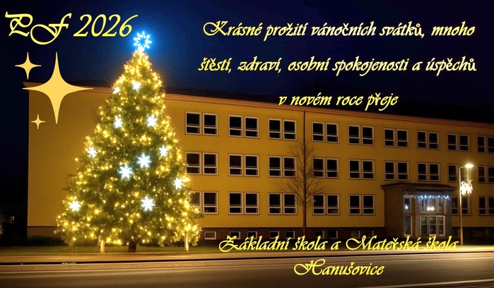 Všem rodičům, zákonným zástupcům, dětem, žákům, zaměstnancům, obchodním partnerům i přátelům školy přejeme klidné sváteční dny a mnoho pevného zdraví do nového roku 2026.