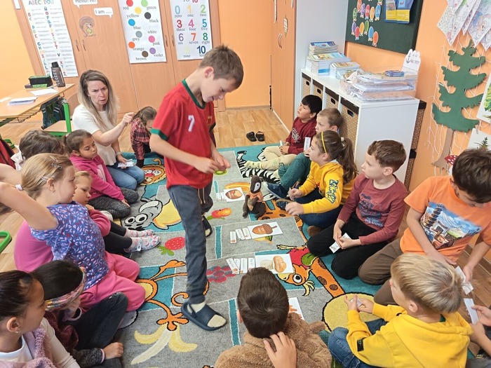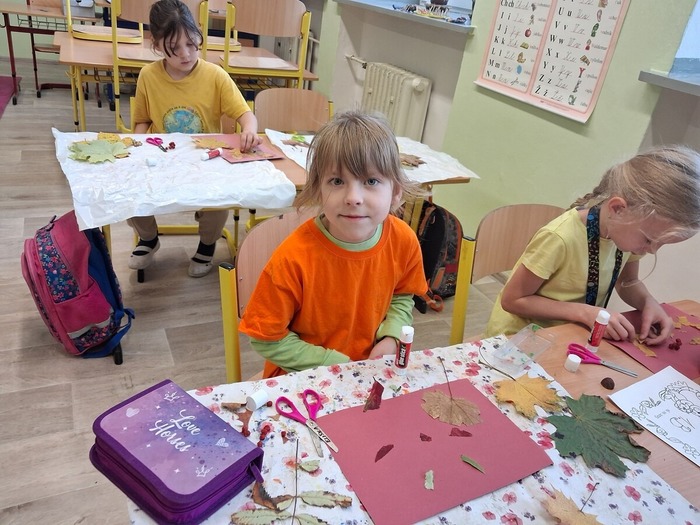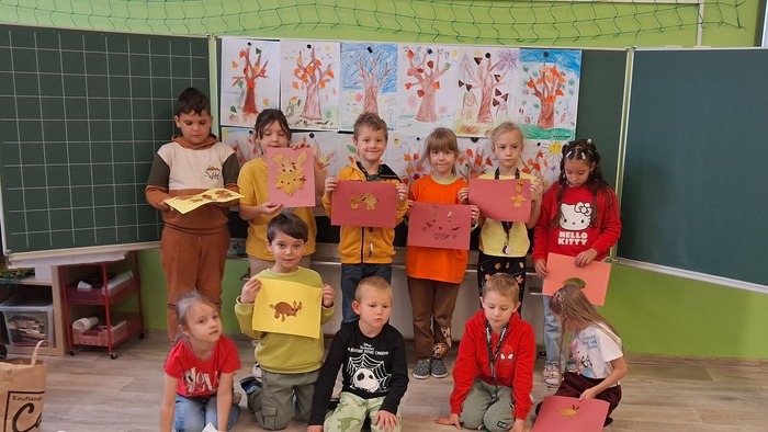 Ve čtvrtek 16. října 2025 proběhl na celém prvním stupni projektový den na téma Podzim – les, strom, list. Vyučování se celý den neslo v podzimním duchu a téma se dotklo všech vyučovacích předmětů. V matematice jsme počítali příklady s ovocem a zeleninou, které se právě sklízí. V českém i anglickém jazyce měly paní učitelky nachystané křížovky a hádanky o stromech. Četli jsme si a recitovali básně s podzimními náměty a zazpívali oblíbenou píseň autorské dvojice Svěrák–Uhlíř s názvem Září. Celé akci předcházela vlastivědná vycházka do lesa. Pozorovali jsme, jak se příroda mění, po létě se chystá k zimnímu spánku a ukázali jsme si některé jehličnaté i listnaté stromy. Děti si nasbíraly nejrůznější přírodniny a ve výtvarné výchově i v pracovních činnostech jsme vyráběli krásné podzimní dekorace. Protože jsme přišli oblečeni v podzimních barvách, všichni jsme se vyfotili a podařilo se nám vytvořit lipový list.