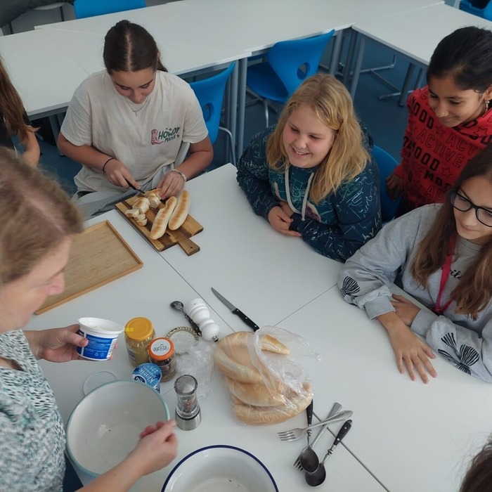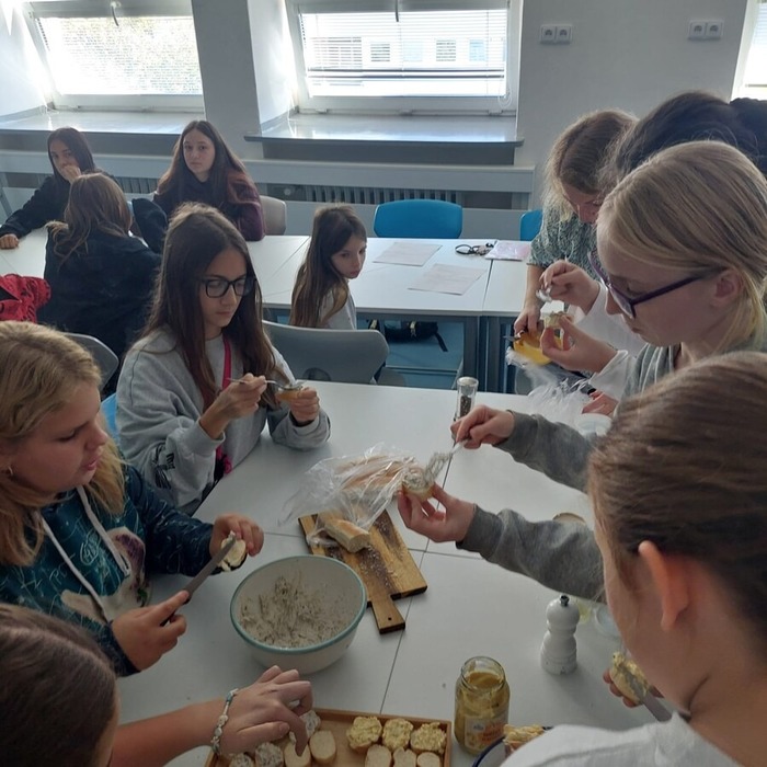 V pondělí 13. 10. jsme ve spolupráci s paní asistentkou a děvčaty ze šestých tříd připravily vyučovací hodinu pracovních činností, která se nesla v duchu kulinářského tvoření. Věnovaly jsme se studené kuchyni, konkrétně výrobě pomazánek.