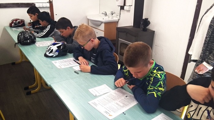 V teoretické části museli žáci formou testu prokázat znalosti o pravidlech silničního provozu a povinné výbavy jízdního kola. Na tuto oblast byli dobře připraveni především ti, kteří chodili ve škole v druhém pololetí do dopravního kroužku a testy si již procvičovali. Neúspěšní žáci budou muset test zopakovat. Pochvalu za bezchybně vypracovaný test a správné odpovědi na otázky týkající se povinné výbavy kola si zaslouží Kateřina Marčanová ze IV.A, Damien Rigas ze IV.A, Elena Janková ze IV.B a Jakub Czajkowski ze IV.B.