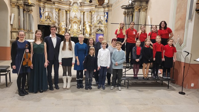 V pátek 12. prosince 2025 se dětský pěvecký sbor Slavíci z Hanušovic stal milým hostem Vánočního koncertu pana učitele Pavla Hrdiny, který se uskutečnil v nádherném prostředí Klášterního kostela v Šumperku. Účast sboru na tomto koncertě je již tradicí a ani letos Slavíci nezklamali, svým vystoupením opět vzorně reprezentovali hanušovickou školu. Sbor se představil s pečlivě vybraným vánočním repertoárem, který citlivě doplnil slavnostní atmosféru adventního času. Posluchače zaujala nejen sehranost celého sboru, ale také zdařilá sólová vystoupení jednotlivých zpěváků, jež dodala programu pestrost a emoce. O klavírní doprovod se postaral pan učitel Pavel Hrdina, jehož citlivá hra byla pevnou oporou celého vystoupení. Zvláštní poděkování patří také Julii Kubíčkové, posluchačce Fakulty umění Ostravské univerzity, za houslový doprovod, který koncert krásně zpestřil a oživil. Výkony malých zpěváků byly odměněny srdečným potleskem publika, který byl pro děti tou nejhezčí odměnou. Na závěr koncertu byli navíc nejlepší a nejpilnější zpěváčci oceněni plyšovými hračkami jako poděkování za jejich píli, snahu a věrnost sboru. Všichni obdrželi sladkou odměnu.