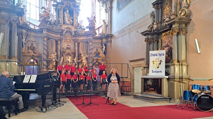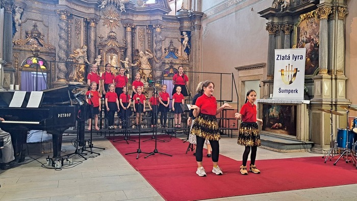 V sobotu 24. května 2025 se Slavíci z Hanušovic již po páté zúčastnili Zlaté lyry v Šumperku. Přesto, že se jedná o nesoutěžní festival, po koncertu následuje tzv. „povídání s porotou“, kde se odborná porota vyjadřuje k výkonům jednotlivých sborů. Tentokrát jsme byli pochváleni ve všech oblastech: kvalitní zvuk celého sboru, výborní sólisté, pěkný repertoár, vhodná choreografie s taneční vložkou, oblečení, účes i vystupování děvčat a výborný výkon klavírního doprovodu a sbormistryně! Ocenění nám udělalo velikou radost, je pro nás motivací do další práce a již se těšíme na naše další vystoupení!