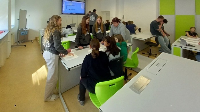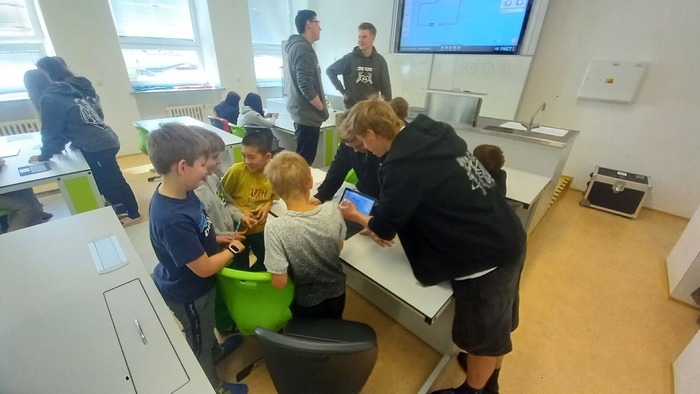 V úterý 29. dubna se pátou vyučovací hodinu proměnili deváťáci v učitele fyziky. Celá třída se rozdělila do pěti skupinek a každá skupinka si nachystala svoji prezentaci pro jednu skupinku třeťáků. V nově zrekonstruované a moderně vybavené učebně fyziky vysvětlili žáci na atraktivních modelech a pomůckách včetně digitálních technologií pojmy jako elektrický obvod, vodič, žárovka, zvonek, elektron a další fyzikální záležitosti. Třeťáci dostali za úkol mimo jiné i zapojit elektrický obvod a když byli úspěšní, rozsvítila se jim žárovka.