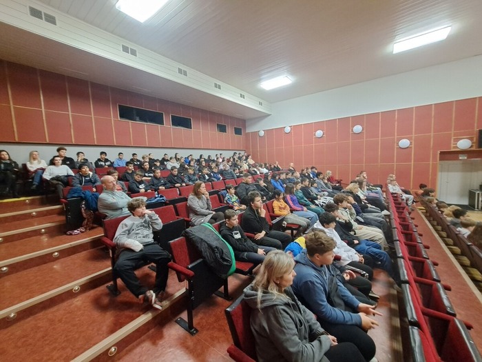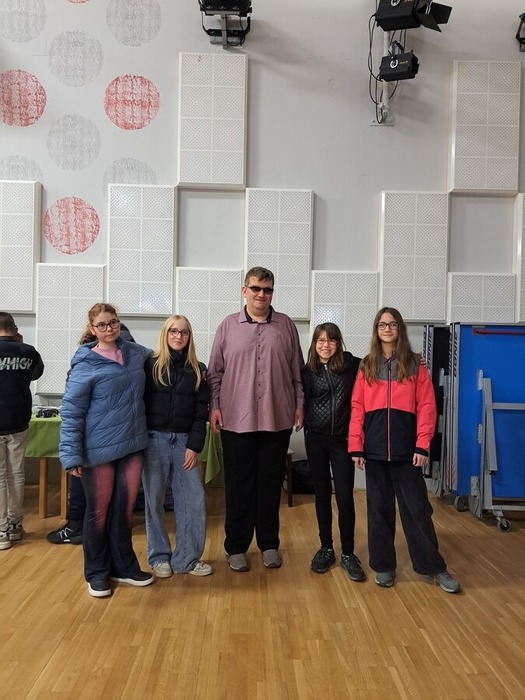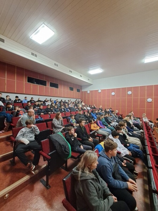 Dne 12. listopadu se v Kulturním domě v Hanušovicích uskutečnil výchovný koncert pro starší žáky naší školy. V rámci festivalu Dny umění nevidomých zde vystoupil zpěvák a hudebník Radek Žalud. Koncert nabídl nejen hudební zážitek, ale i inspirativní pohled na život s handicapem. Koncert začal skladbou klasické hudby, při které se na tvářích dětí zpočátku objevovala spíše rozpačitost. Jakmile však zazněly známější melodie z muzikálů a populární hudby, atmosféra se výrazně proměnila. Děti začaly spontánně tleskat do rytmu a po zpěvákově výzvě se dokonce pustily do tance. Nakonec si děti vyžádaly ještě přídavek – a byla to známá taneční píseň Non stop, která děti doslova dostala do varu. Celý sál ožil, žáci tančili, smáli se a užívali si hudbu naplno. Po skončení koncertu se s Radkem Žaludem nadšeně fotili a jeden z žáků spontánně zvolal: „To je ale borec!“. Koncert měl nejen umělecký, ale i výchovný charakter. Děti se dozvěděly, co obnáší život nevidomého umělce, jak důležitá je vůle, podpora okolí a víra ve vlastní schopnosti. Radkův příběh je pro mnohé inspirací k tomu, aby si vážili možností, které mají, a nebáli se výzev.