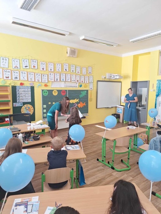 V pondělí 1. 9. zahájili prvňáčci svou novou životní etapu, stali se novými žáky naší školy. Slavnostní zahájení proběhlo ve třídách I.A a I.B, kde byli přivítáni panem ředitelem Davidem Navrátilem a panem starostou Markem Kostkou, který dětem předal drobné dárky, za které moc děkujeme. Po přivítání se děti ponořily do hlubin moří a oceánů – hledaly ukryté rybí šupiny a mušličky, lovily rybičky a kreslily obrázky. Veškeré úkoly splnily na jedničku.